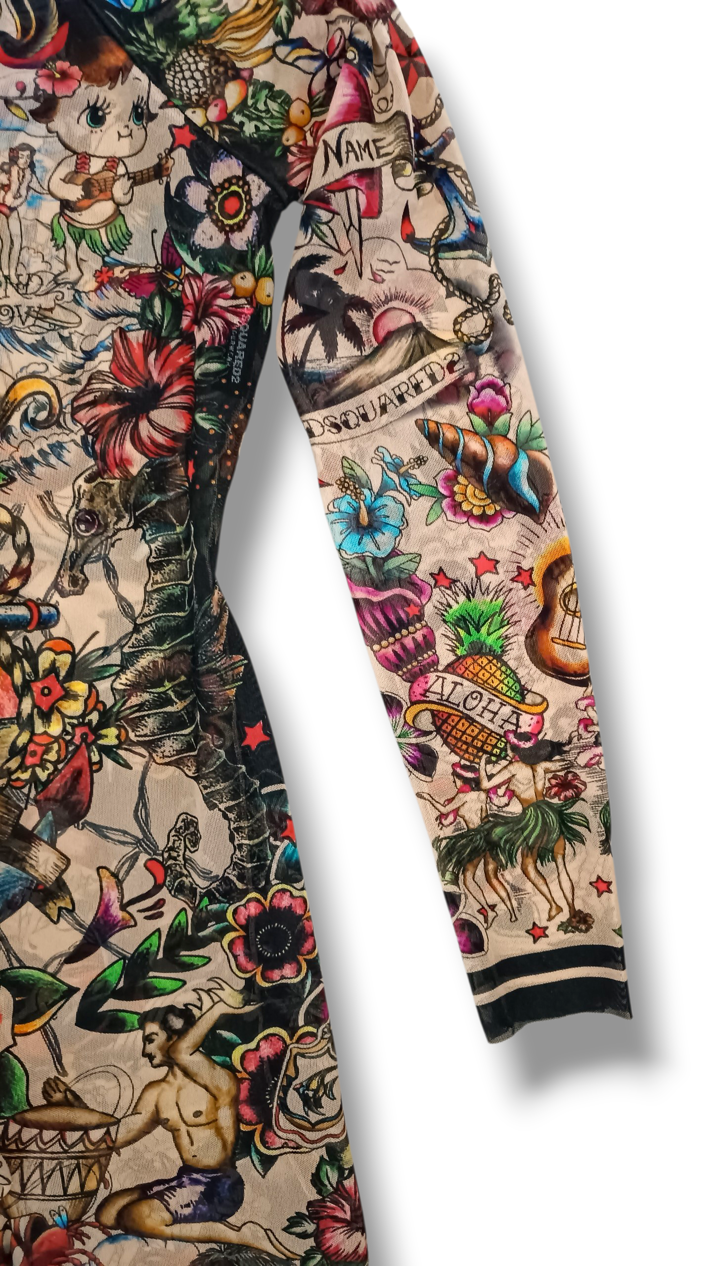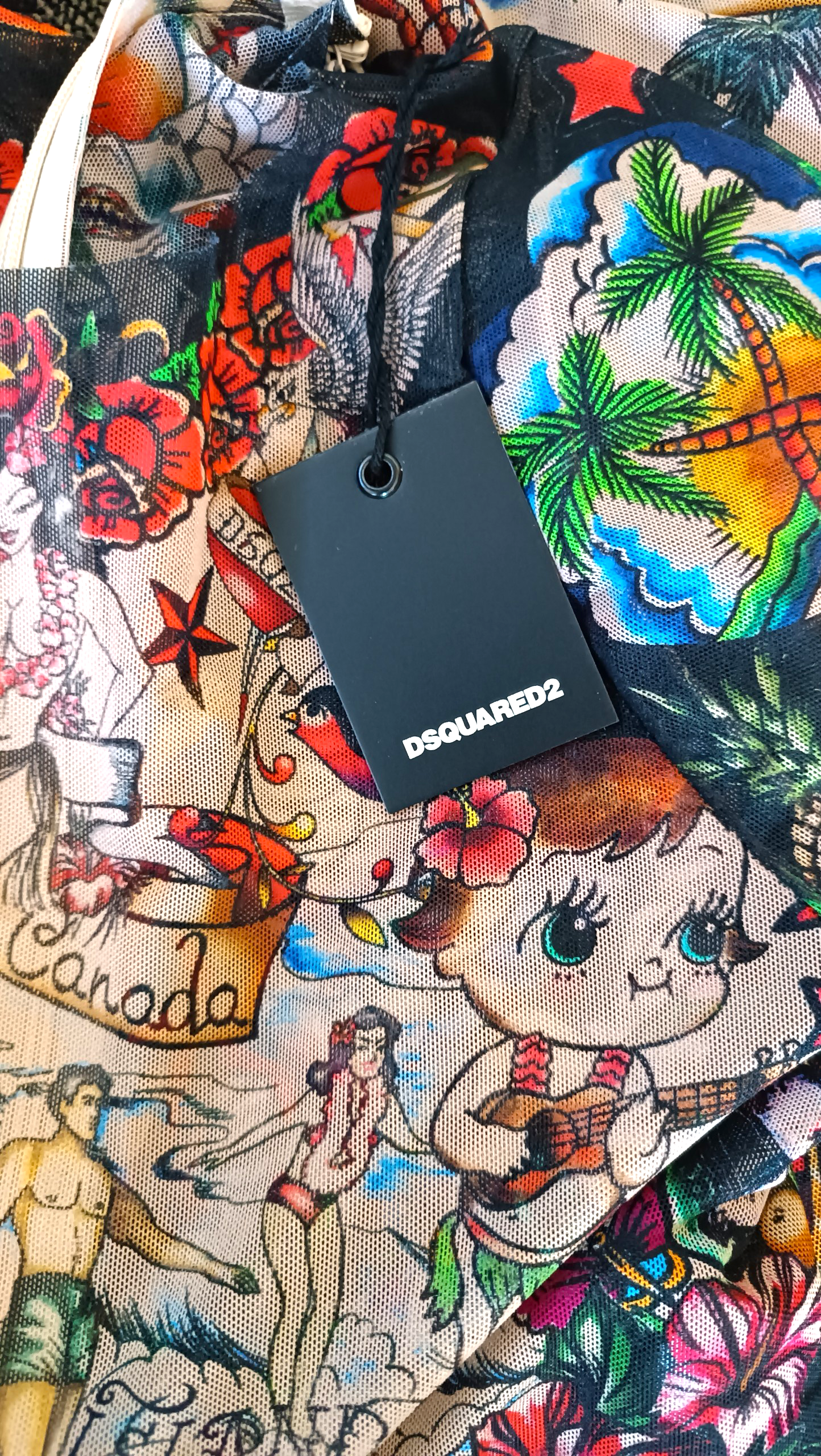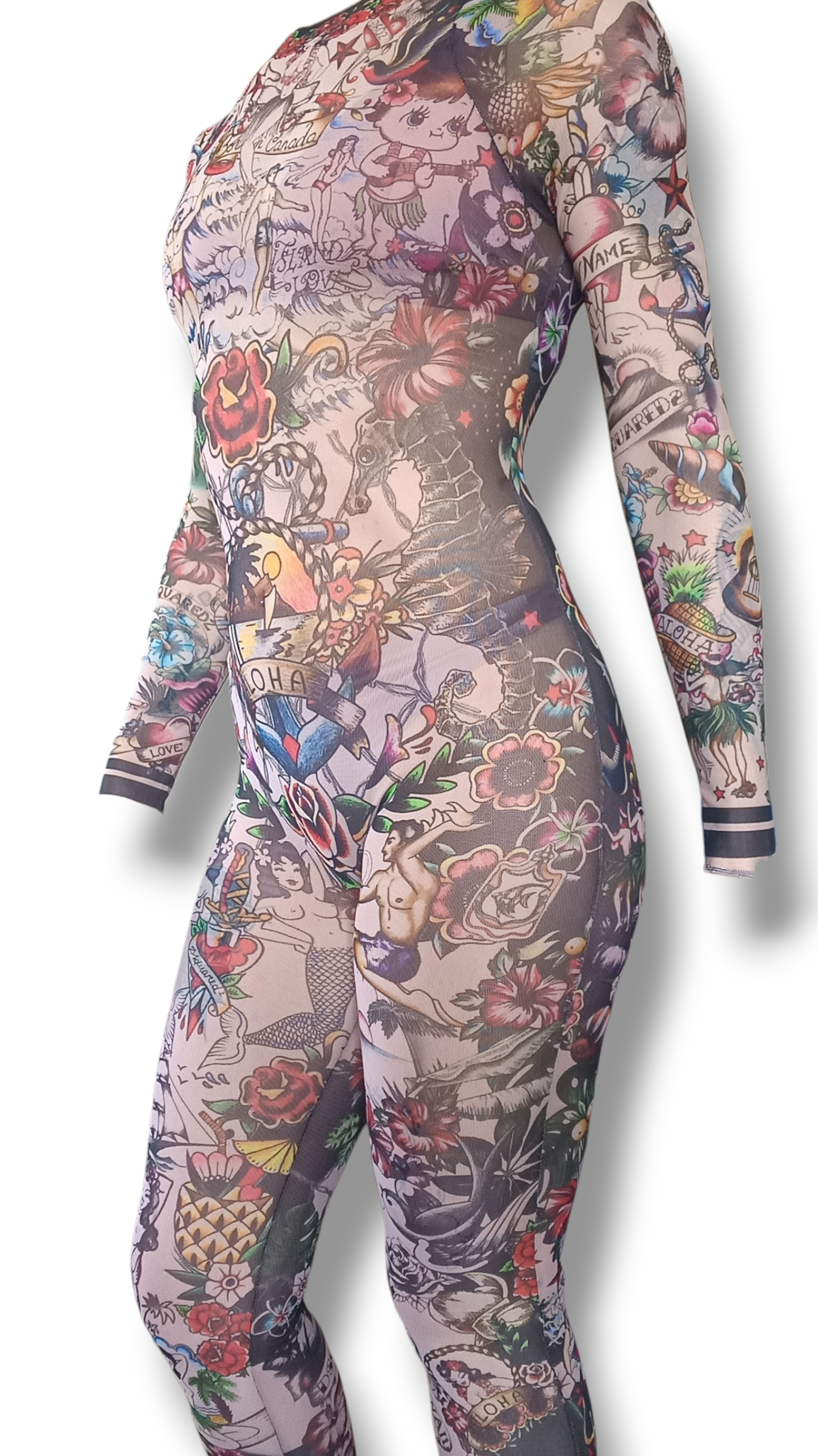 - Tejido: transparente con motivos de tatuajes