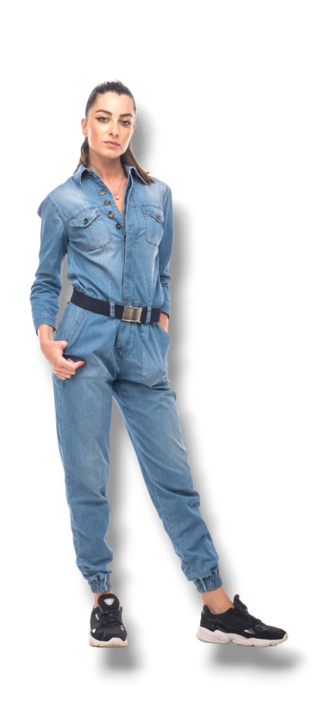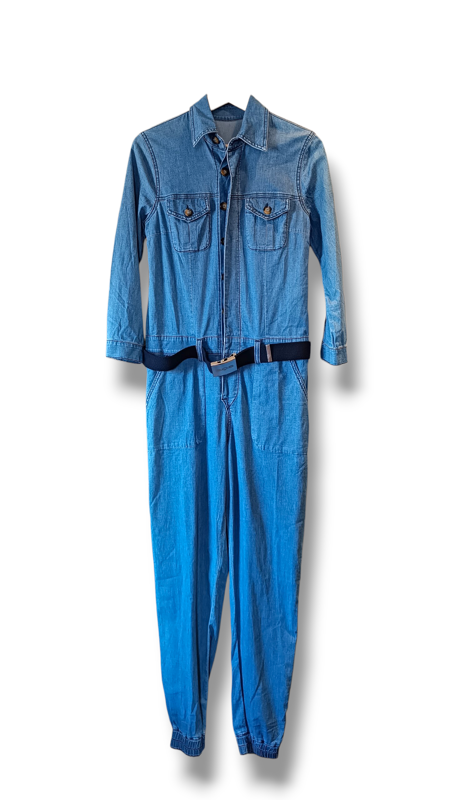 Mono vaquero de la marca SOS Jeans con diseño práctico y favorecedor, ideal para un look completo en una sola prenda. Su botonadura frontal completa facilita el uso y aporta un estilo casual con carácter, mientras que el cinturón permite ajustar la silueta.
