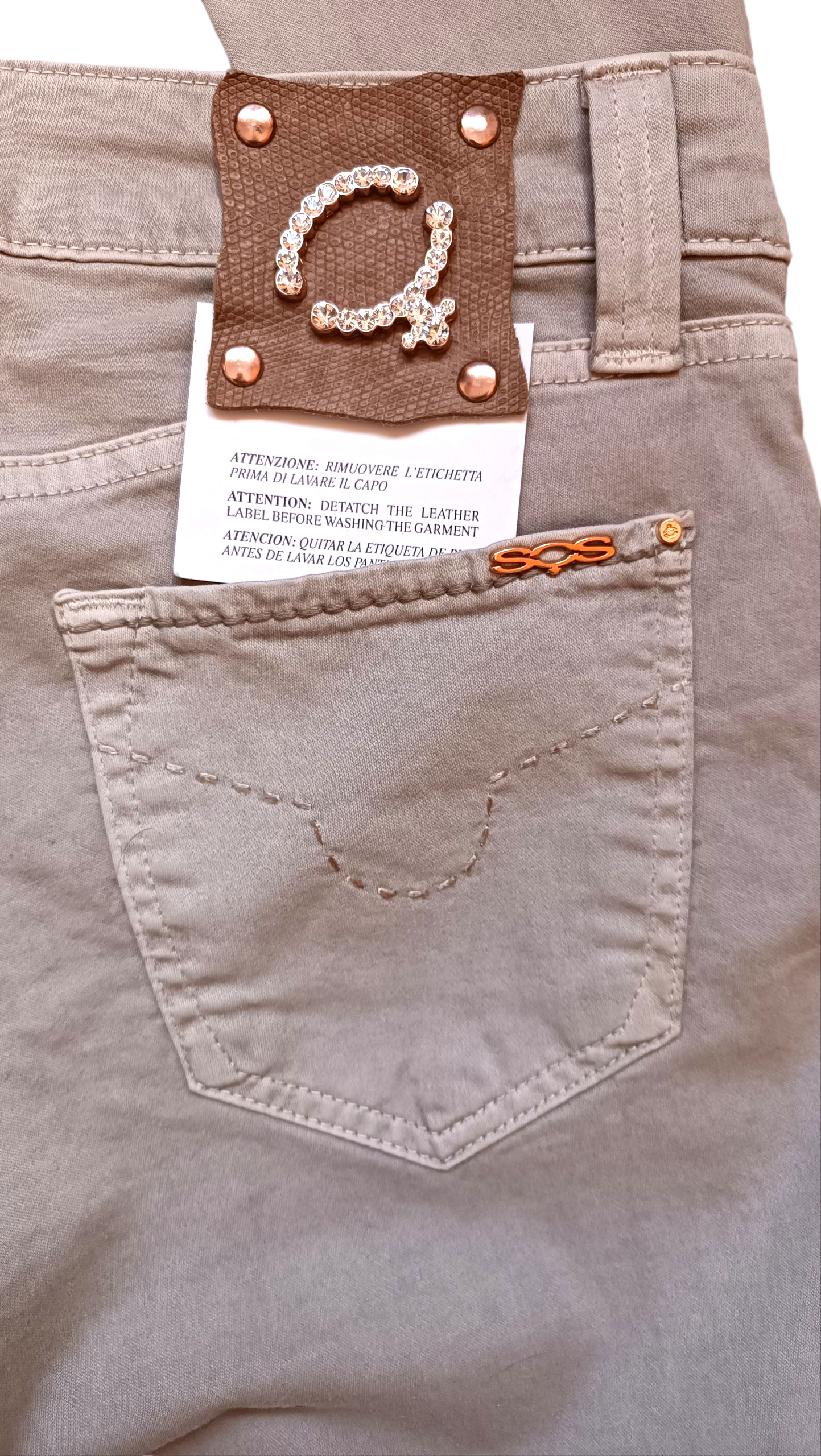 Diseñado con tejido stretch de alta calidad, este vaquero combina la suavidad del algodón con la flexibilidad de la lycra, brindando una comodidad excepcional durante todo el día. Su tono es una alternativa sofisticada al clásico denim, ideal para crear looks elegantes y contemporáneos. La etiqueta trasera de piel, junto con el botón joya intercambiable, aportan un toque exclusivo digno de la moda italiana.