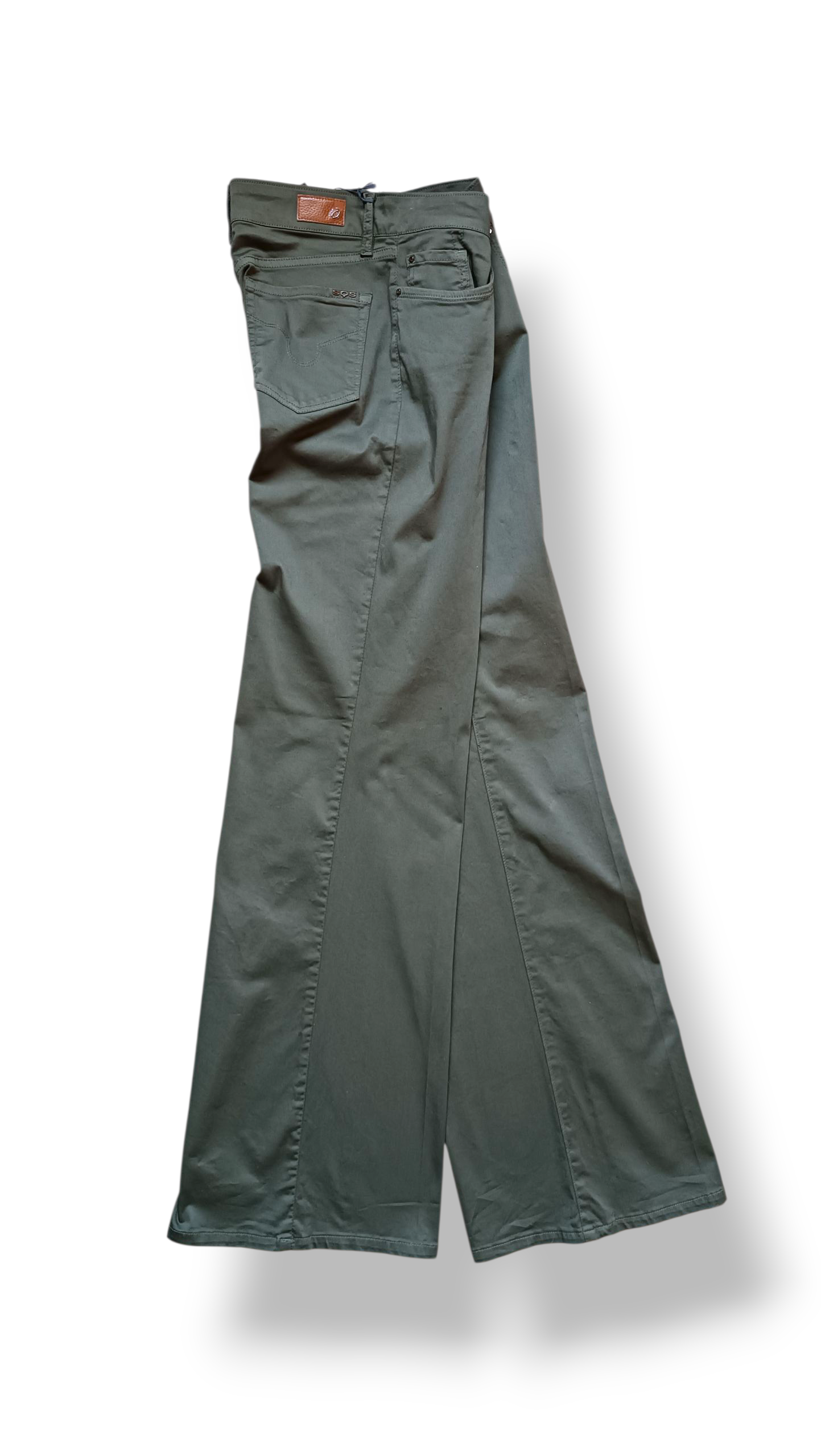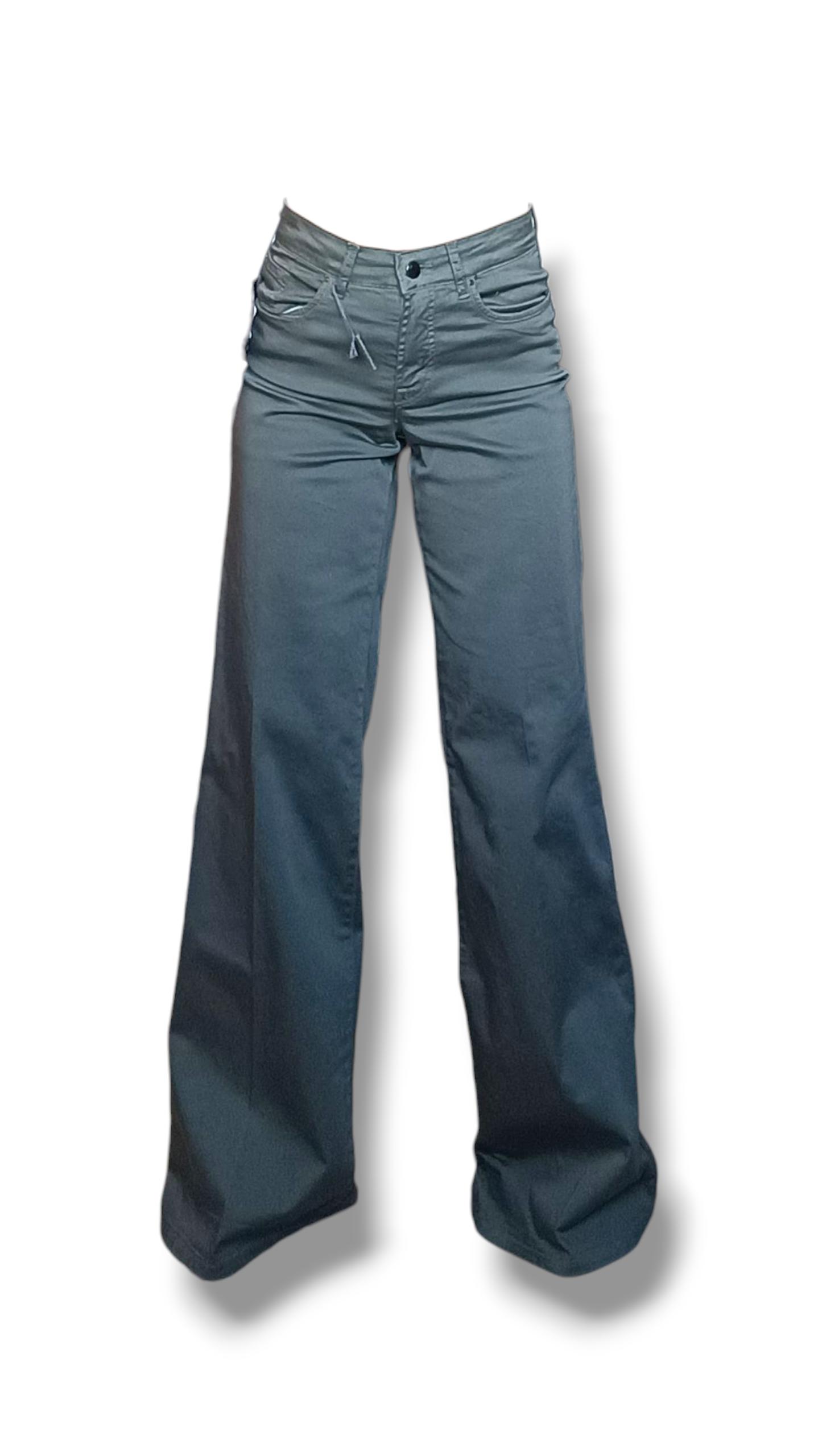 Este elegante pantalón de tejido satinado combina sofisticación y comodidad en un diseño de pierna ancha y caída fluida hasta el suelo. Su color verde militar aporta un aire moderno y versátil, perfecto tanto para looks de día como de noche.