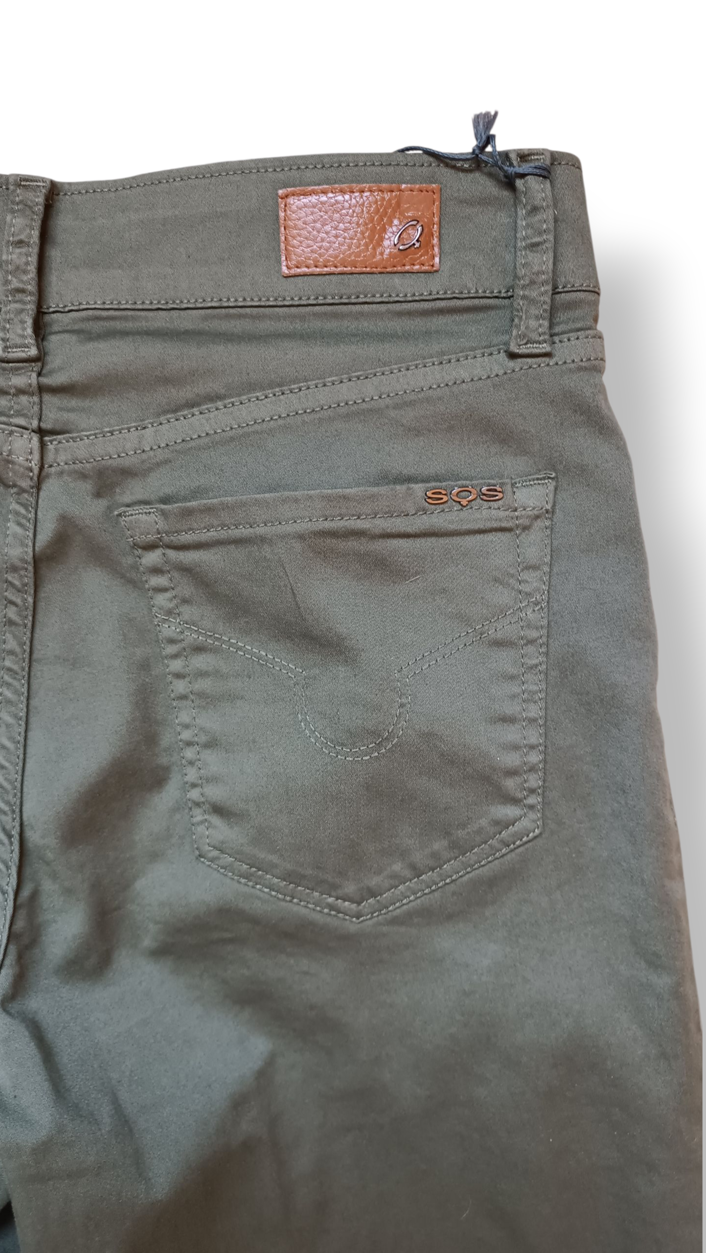 Cuenta con cierre de botón y cremallera, 5 trabillas, y cinco bolsillos funcionales (3 delanteros y 2 traseros). Su tejido (97% algodón, 3% lycra) ofrece un ajuste cómodo, suave y ligeramente elástico que realza la figura sin marcarla.