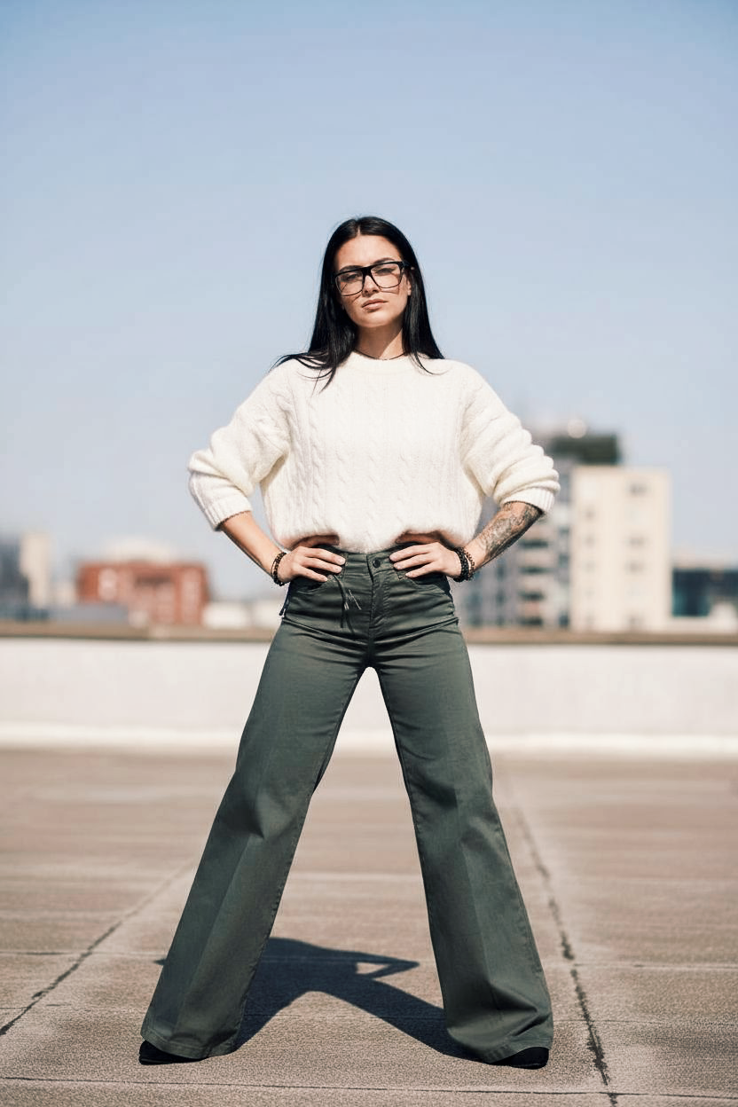 - Pierna ancha que estiliza y aporta movimiento.